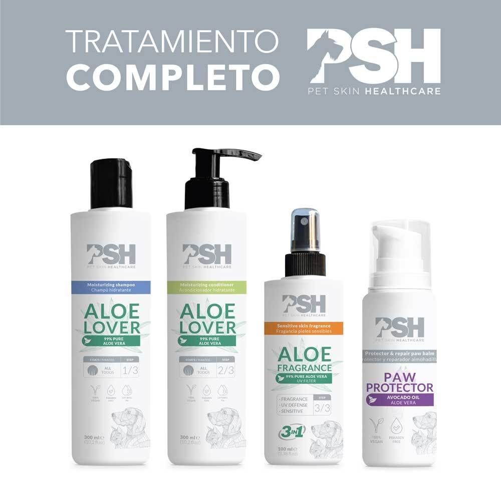PSH Aloe Fragrance 3v1 je regeneračný jemný parfum pre psov a mačky s jemnou vôňou. Poskytuje citlivej pokožke a srsti správnu hydratáciu, ÚV ochranu pred slnkom.